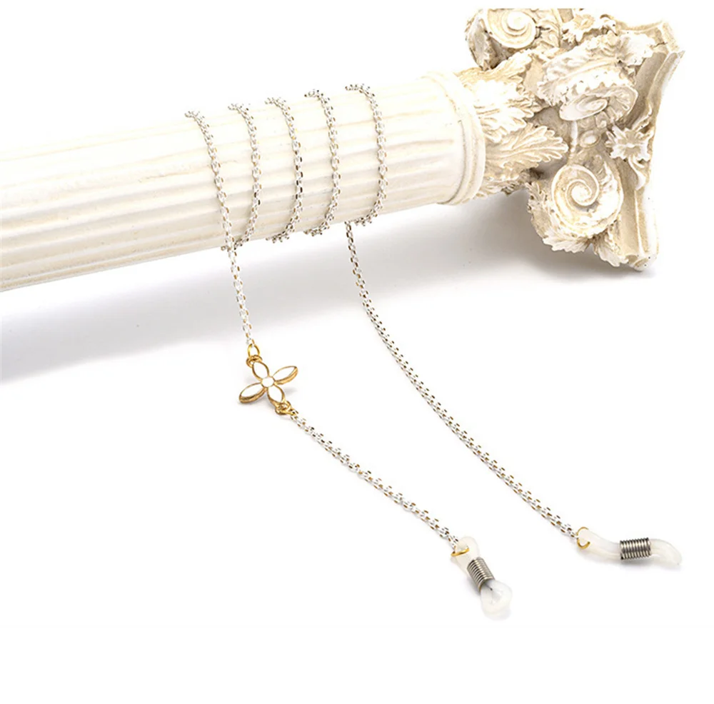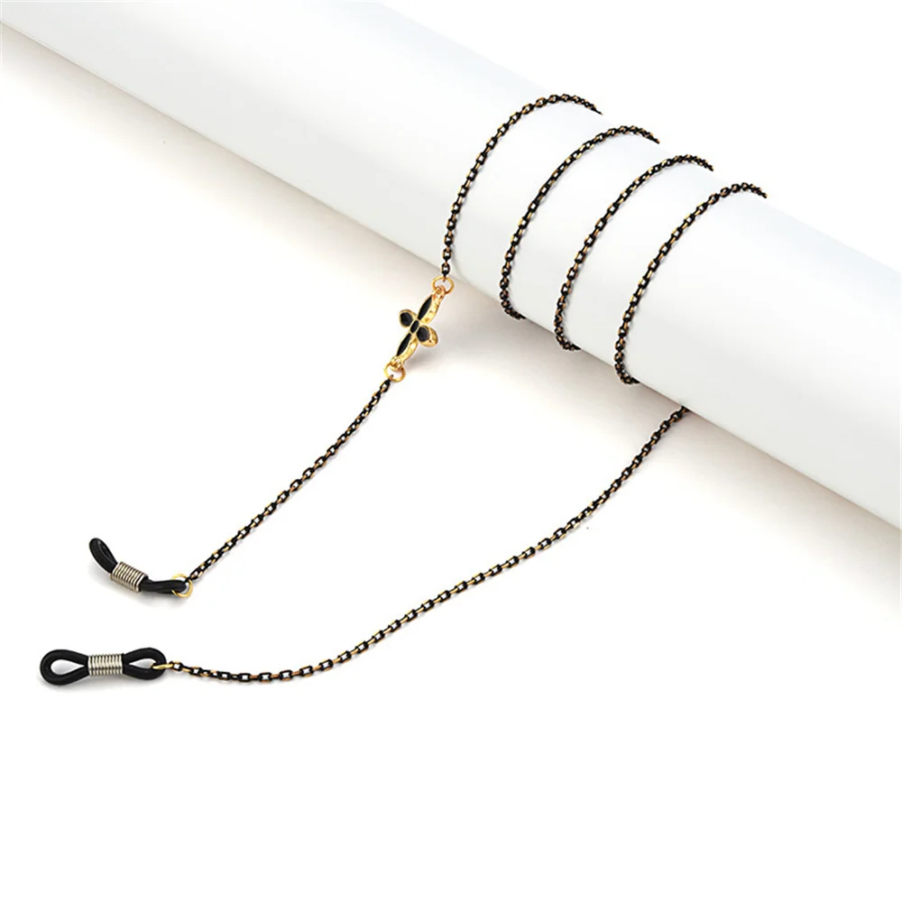 Артикул: аксессуары для глаз, солнцезащитные очки Абсолютно новый и с надежным качеством Односторонний четырехлистный цветок Регулируемые резиновые концы с металлическими катушками Материал: металл Длина: около 79 см Цвет: черный и белый Посылка включает в себя: 1 шт. очки с цепочкой