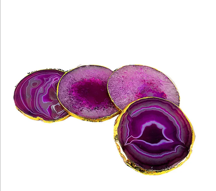 Натуральный агат ломтики горки полированный Агат ремесла Pad подставки gilt -1 шт