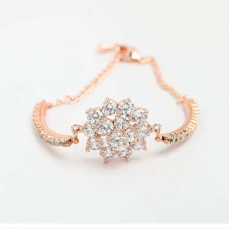 Товар TyПE:Роскошные кубические циркониевые браслеты в форме цветка из розового золота с покрытием из звеньев, браслеты с цепочкой, Модные CZ свадебные украшения для женщин