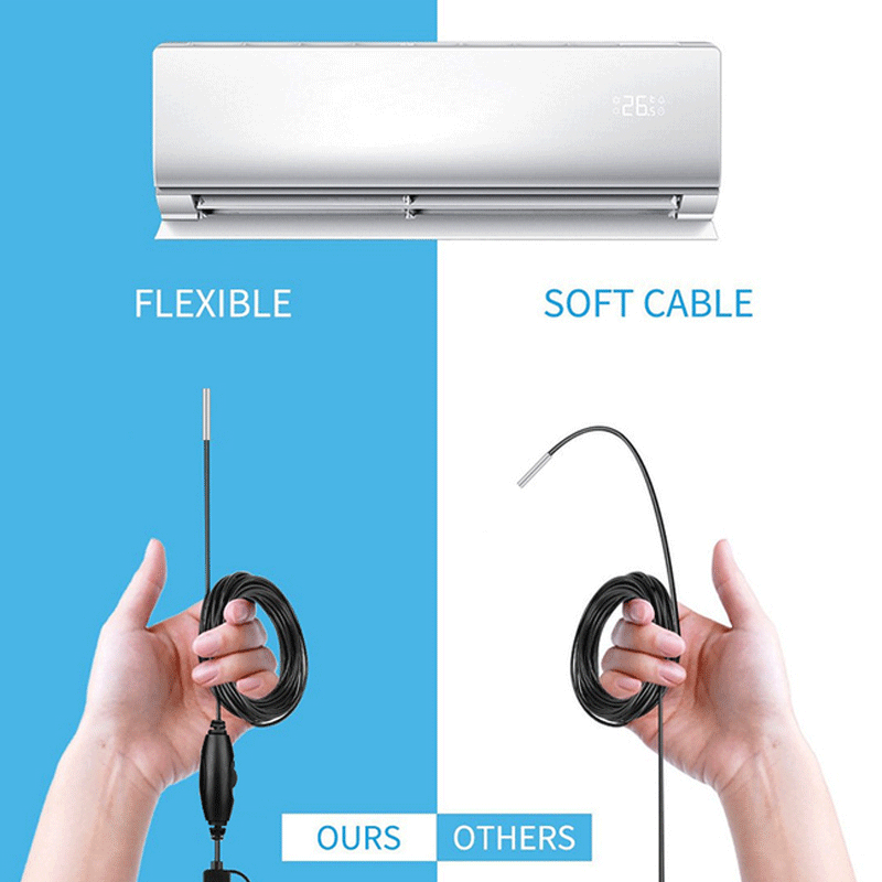 Эта беспроводная эндоскопическая камера wifi с сильным полужестким кабелем, гибким и гибким полужестким прочным кабелем. гибкий Полужесткий кабель может сгибаться и удерживать форму, чтобы получить доступ к другому месту. такие как изогнутые отверстия или трубы.
