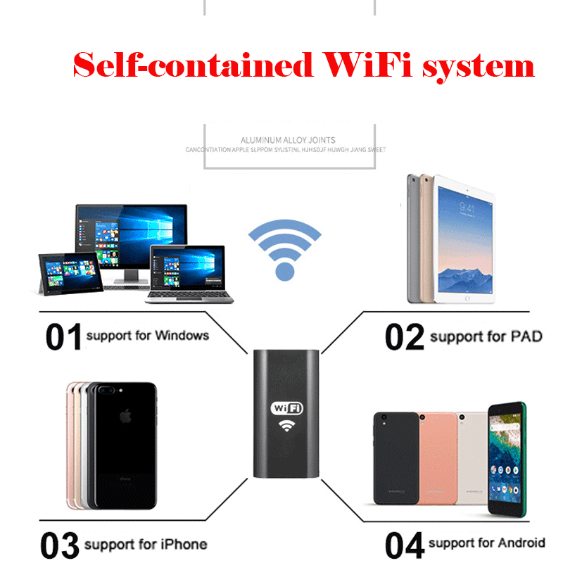 Беспроводной и простой в использовании: отсканируйте qr-код в руководстве, чтобы загрузить приложение WIFI VIEW, а затем этот эндоскоп может быть легко подключен к вашему смартфону через WIFI. Этот эндоскоп имеет свой собственный сигнал Wi-Fi и встроенный литий-ионный аккумулятор, нет необходимости в внешнем кабеле, поэтому он будет работать в любом месте и удобнее для различного использования.
