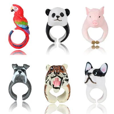 3D симпатичное кольцо животное, кошки, собаки, тигра, зайца, панды, Мультяшные кольца для женщин, кольцо для животных, детские украшения