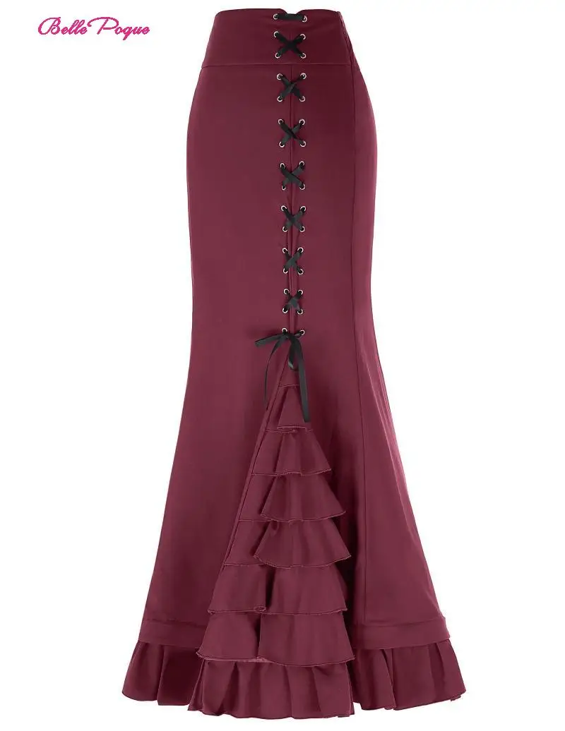 1) высокая талия 2) талия немного эластичная, юбка хорошо эластичная 3) корсет со шнуровкой спереди 4) подол русалки с оборками 5) скрытая молния с левой стороны 6) без подкладки |