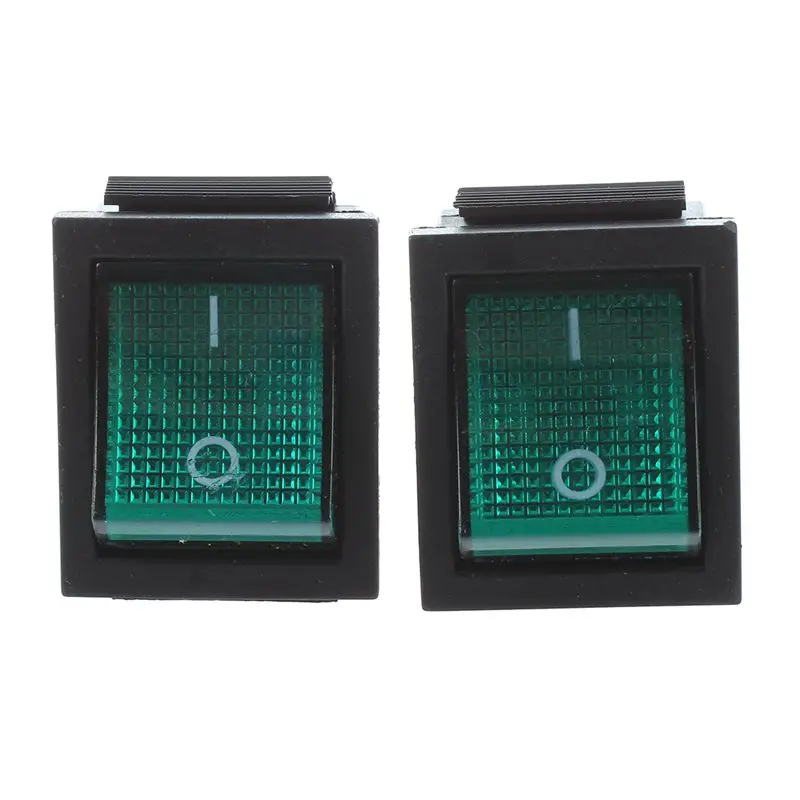 2 х зеленый свет 4Pin DPST ВКЛ-ВЫКЛ кнопка в лодке кулисный переключатель 16A/250 V 20A/125 В переменного тока Название продукта: клавишный переключатель;Полюсов: DPSTКлеммы: 4 контакта (ВКЛ-ВЫКЛ);Номинальное напряжение: 16A 250 В переменного тока, 20A 125 В переменного тока;Общий размер (каждый): 3,1x2,5x2,9 см/1,2 "x 0,9" x 1,1 "(Д * Ш * Т)Цвет: черный, зеленый;Материал: пластик и металлОбщий вес: 22,5 гХарактеристики: двухполюсный одиночный бросок (DPST) Тип контакта, кнопка включения выключения в клавишном выключателе.Отмечен на рокере: I/O (вкл.) для точных показаний.Встроенный зеленый неоновый свет (свет, когда переключатель находится в положении on).Применение для многих автомобилей, мотоциклов, лодок, некоторых машин, диспенсеров для воды и т. д.Напряжение света 220 В переменного тока, пожалуйста, обратите внимание на напряжение перед заказом, чтобы убедиться, что клавишный переключатель может успешно работать в вашей области.Содержимое упаковки: 2 x клавишный переключательПримечание: световая съемка и различные дисплеи могут привести к тому, что цвет товара на картинке немного отличается от реального. Допускается погрешность в измерениях +/-1-3 см.
