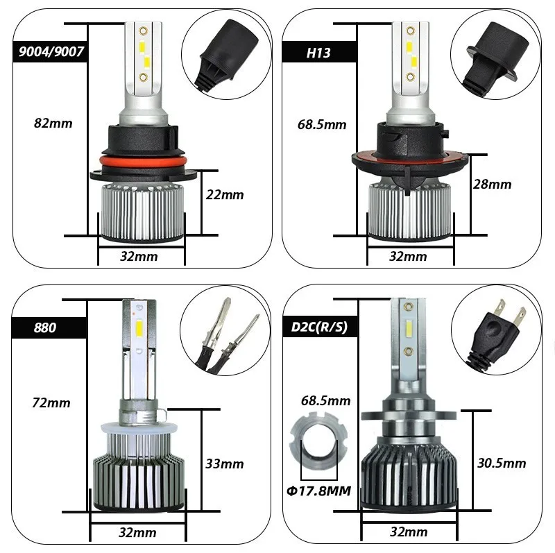 F3. Мини светодиодный фонарь2 шт.H7 Led,H4/9003/HB2,H1,H3,H8/H9/H11,H27/880,9005/HB3,9006/HB4,9004/HB1,9007/HB5,9008/H13,Чип CSP,Турбо вентилятор охлаждения 6000LM 6000K