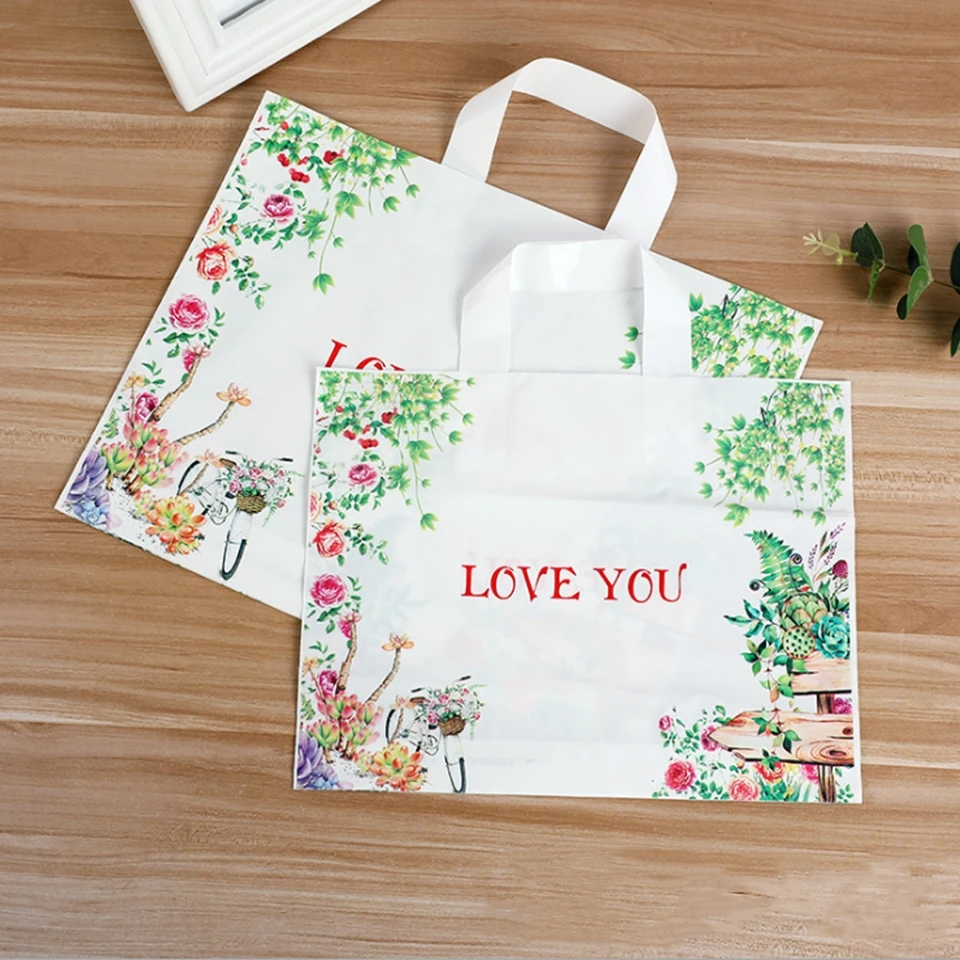 D & P 50 шт. 4 размера Свадебный Цветочный подарок плотный бутиковый подарок для покупок пластиковые сумки с ручками одежда пластиковый пакет для переноски