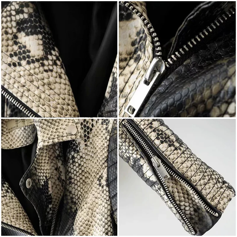 Модная женская винтажная куртка из искусственной кожи со змеиным принтом; пальто с животным принтом; шикарная верхняя одежда для девочек; сезон весна-осень