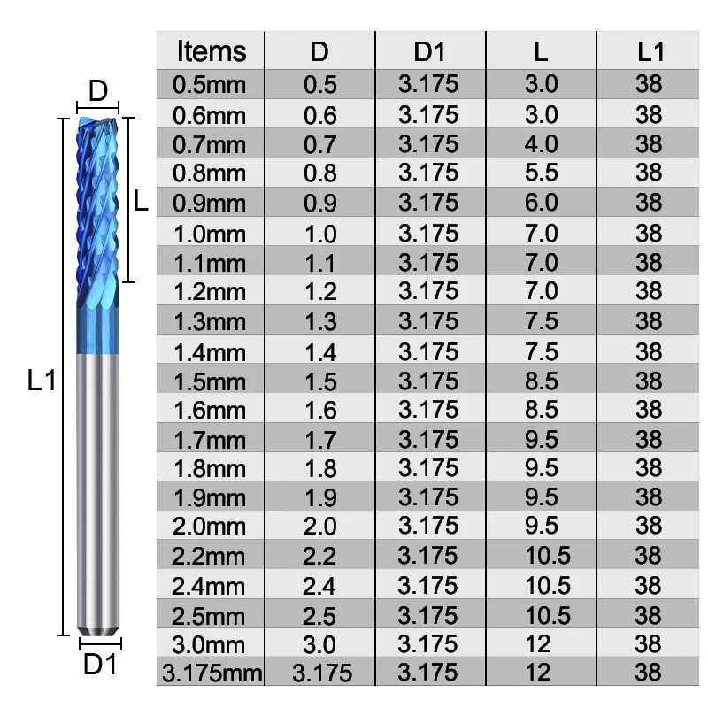 CNC кукурузная Концевая фреза 10 шт. 0,5-3,175 мм PCB фреза с нано-синим покрытием карбидная Концевая фреза 3,175 мм хвостовик PCB машина Гравировальный Бит