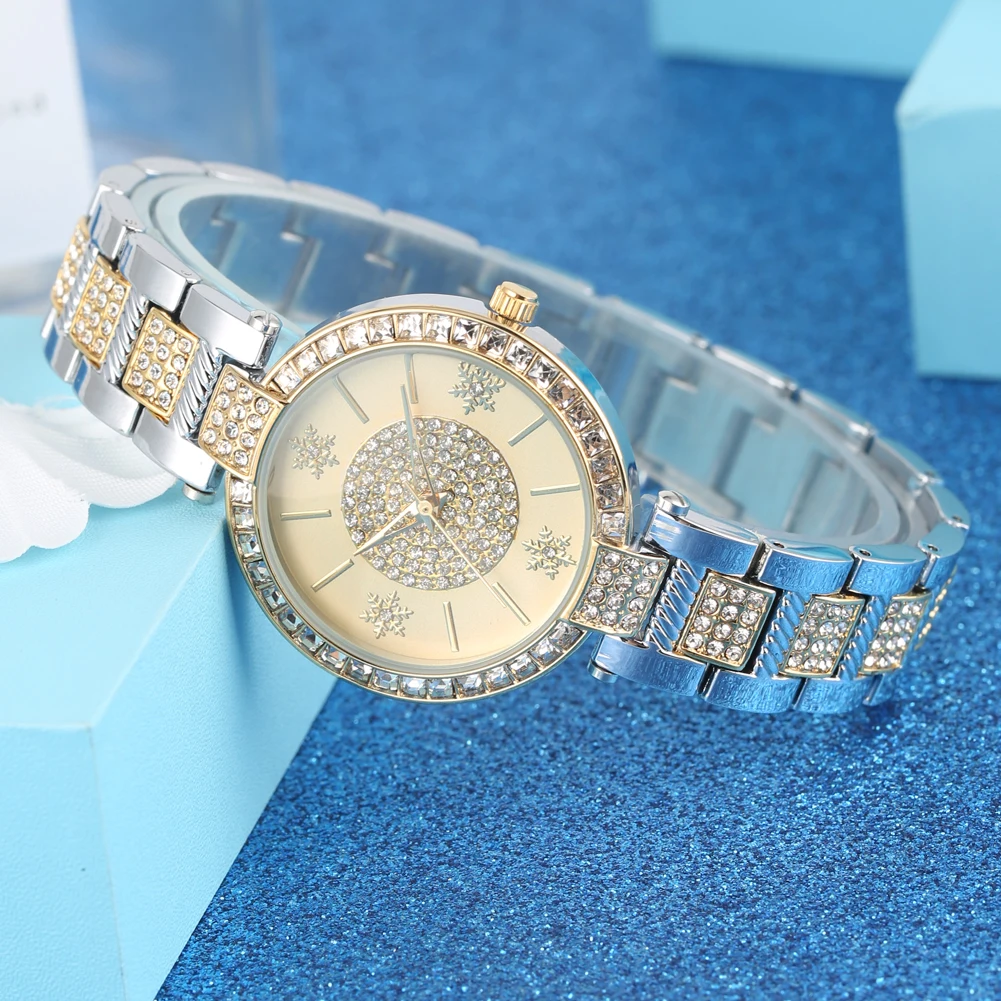 Очаровательный внешний вид: весь чехол для часов и ремешок для часов украшены серебряными бриллиантами на поверхности, что делает их очень красивыми.
