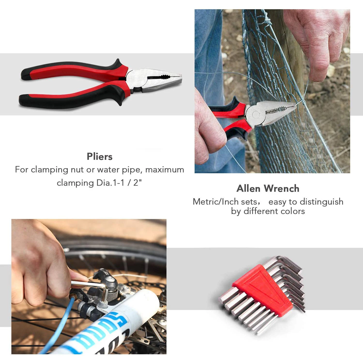 1 х 8 унций Молоток 1x6 дюймов пила 1 х 6 дюймовые комбинированные плоскогубцы 1 х 3 м измерительная лента 1x12 м изоляционная лента 2 х перчатки 2 отвертки PH SL6 * 100 1 отвертка с ручкой 10 x насадки для отвертки 8 х шестигранный ключ (2-6 мм) 6 x Точная отвертка 98 x маникюрных наборов 1 x Ножницы 1 x нож 1 х Электрическая тестовая ручка