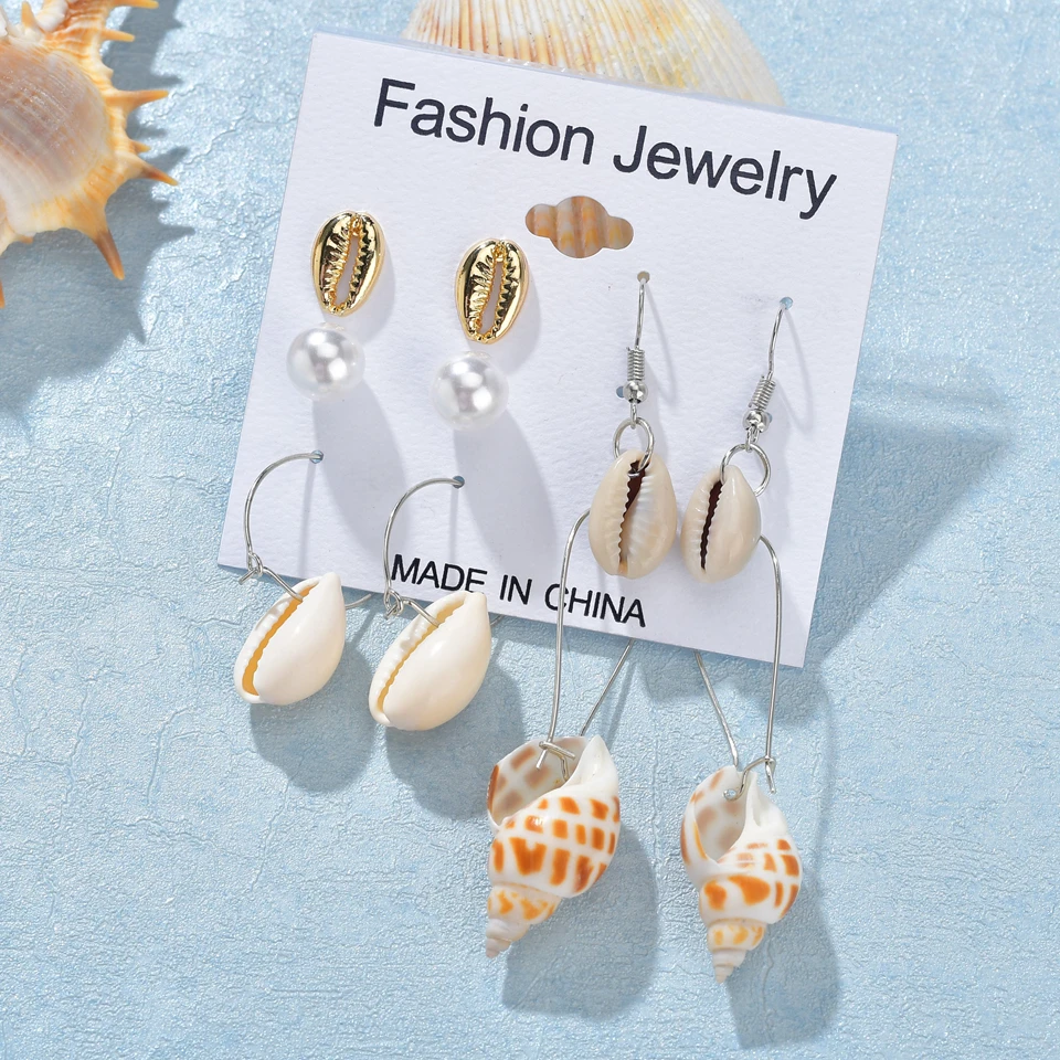 Новая мода в виде ракушки искусственный жемчуг серьги Комплект сережек для женщин в винтажном стиле; Цвета: золотистый, натуральный камень серьги-капли из ракушки Свадебные украшения