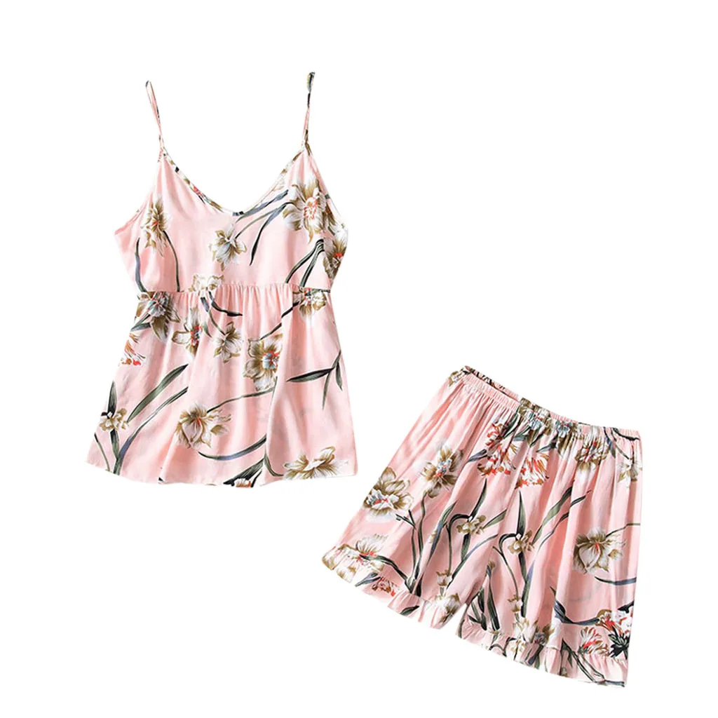 Женская сексуальная майка, летняя одежда для сна с v-образным вырезом, нижнее белье на бретельках, ночное белье с принтом, комплект из 2 предметов, пижама de mujer Wd4, 2019