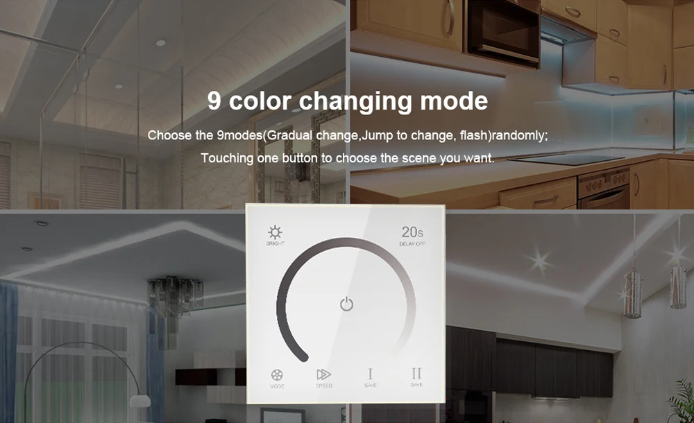 Контроллер сенсорной панели-это новый высококлассный контроллер, разработанный нашей компанией, который принимает дизайн стеклянной панели и имеет красивый и модный внешний вид. Высокоточный емкостный чип сенсорного управления используется для повышения чувствительности сенсора и уменьшения мистриггера. Он используется для управления различными лампами со светодиодами в качестве источника света, Такие как точечный источник света, гибкая полоса, настенный светильник, панель света и т. д. Он имеет преимущества удобного подключения и простого использования. В соответствии с реальными потребностями клиентов, эффекты изменения освещения, такие как прыжки, постепенное изменение и стробоскопические изменения могут быть выполнены.