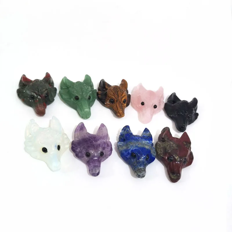 Подвеска в виде волчьей головы с натуральным кристаллом Reiki, Исцеляющие резные драгоценные камни, аксессуары для изготовления ожерелья | ||