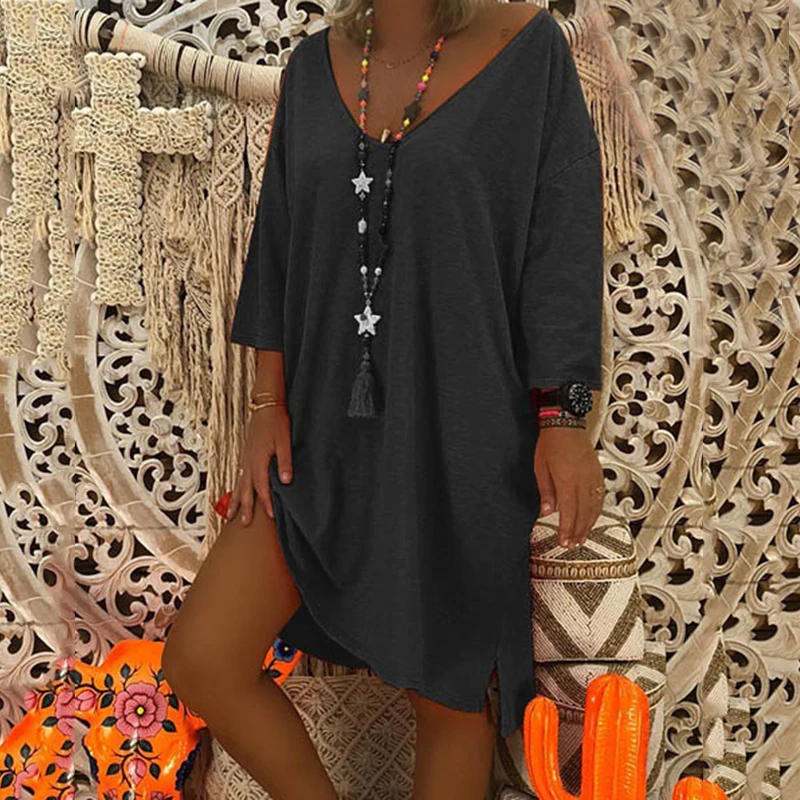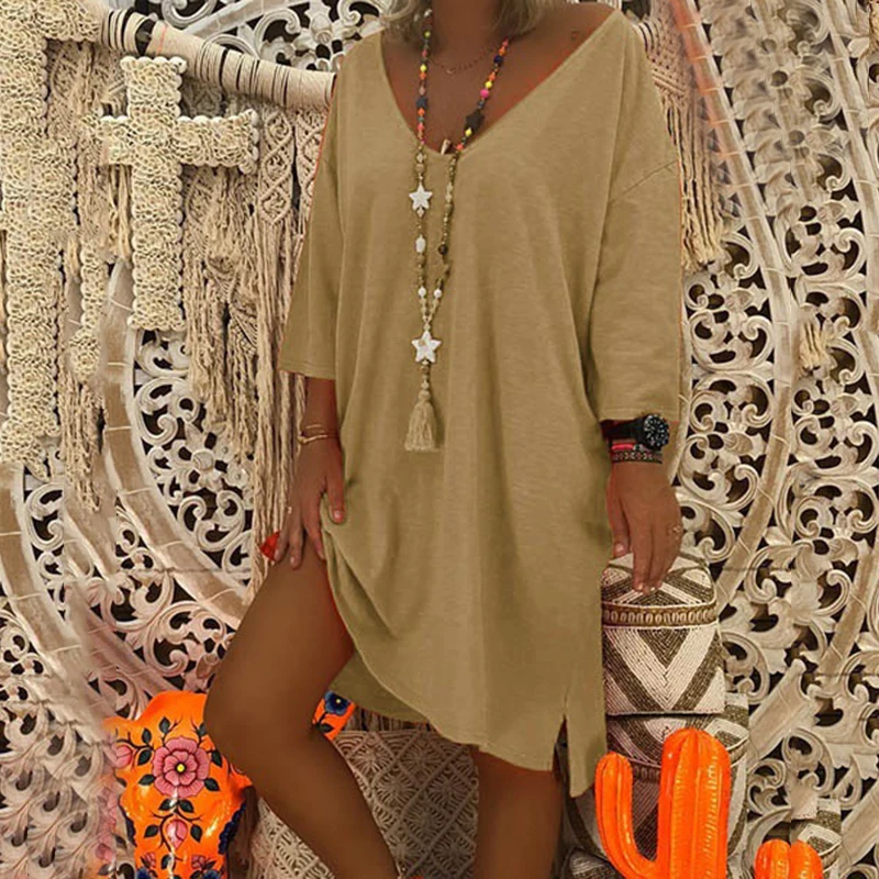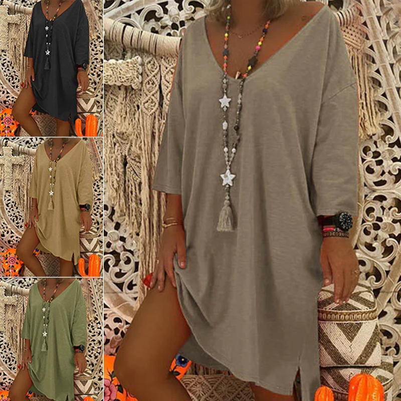 * Описание товара:Женская одежда, летнее повседневное, свободный v-образный вырез с длинным рукавом, Пляжное платье, плюс размер