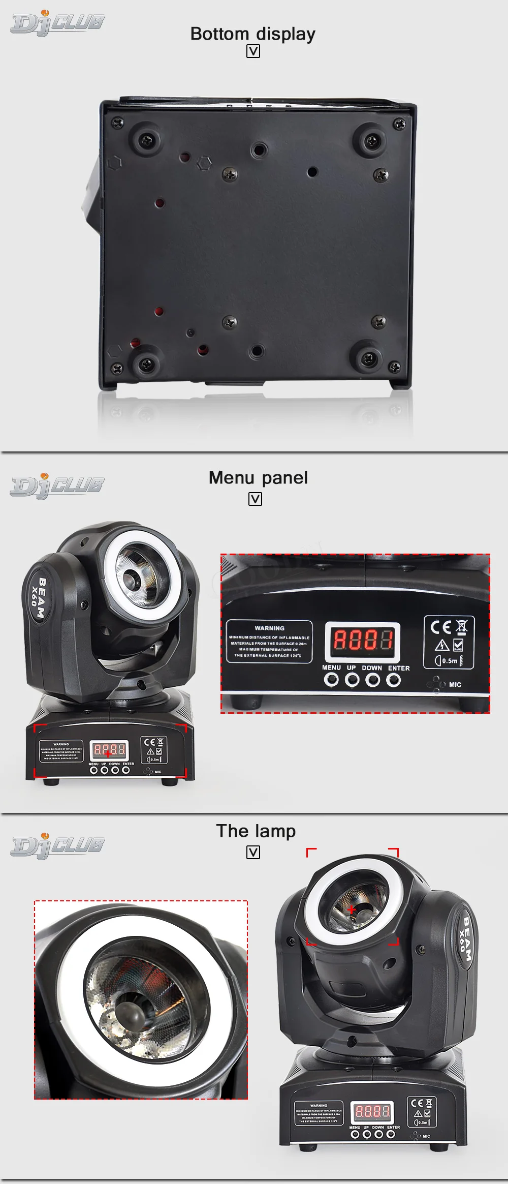 DJCLUB 60w Beam-это компактный 60W RGBW светодиодный луч с подвижной головкой с независимым, встроенным светодиодным кольцом. С 12 индивидуально управляемыми светодиодами RGB, окружающими объектив центрального луча, освещение предлагает различные захватывающие возможности визуального эффекта по доступной цене. Луч DJCLUB использует дизайн объектива коллиматора, создавая яркий и интенсивный вид на сцене. Независимое управление кольцевыми светодиодами также позволяет приспособлению легко переходить в светодиодные элементы на сцене. Другие функции включают непрерывную панорамирование и наклон и легкую конструкцию, обеспечивая ряд интересных возможностей такелажа и высокоскоростной внешний вид. Луч идеально подходит для ночной жизни, дома поклонения, круизных кораблей и небольших и средних туристов и арендованных клиентов. Коллиматорные линзы для суперплотная 4,5 ° высокая интенсивность пучка СВЕТОДИОДНЫЙ Кольцо, украшенное мозаикой из драгоценных камней, 12 самостоятельно управляемый светодиодный s Непрерывный панорамирование/наклон для неограниченного движения и высокоскоростной внешний вид