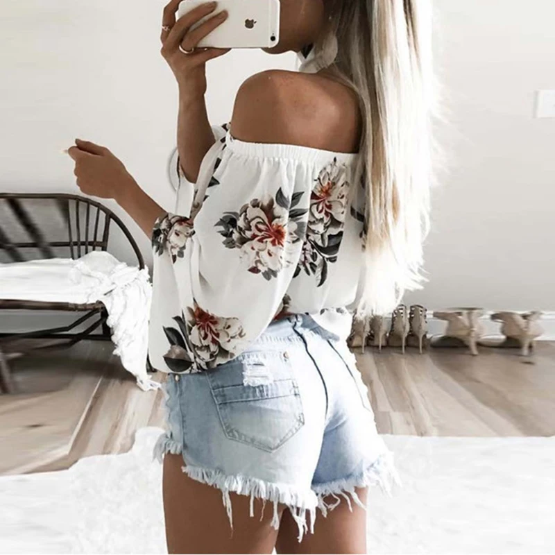 Женские футболки с открытыми плечами, свободные топы с вырезом лодочкой, пляжные футболки размера плюс 3XL, 2019