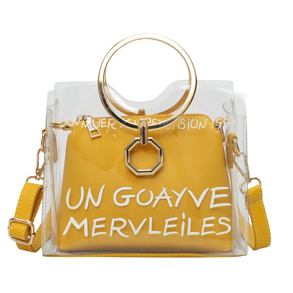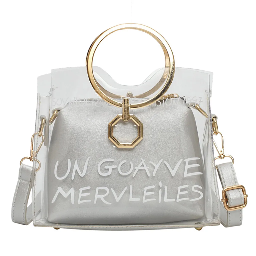 Женские Модные прозрачные сумки через плечо, женские ручные сумки с металлическим кольцом для отдыха