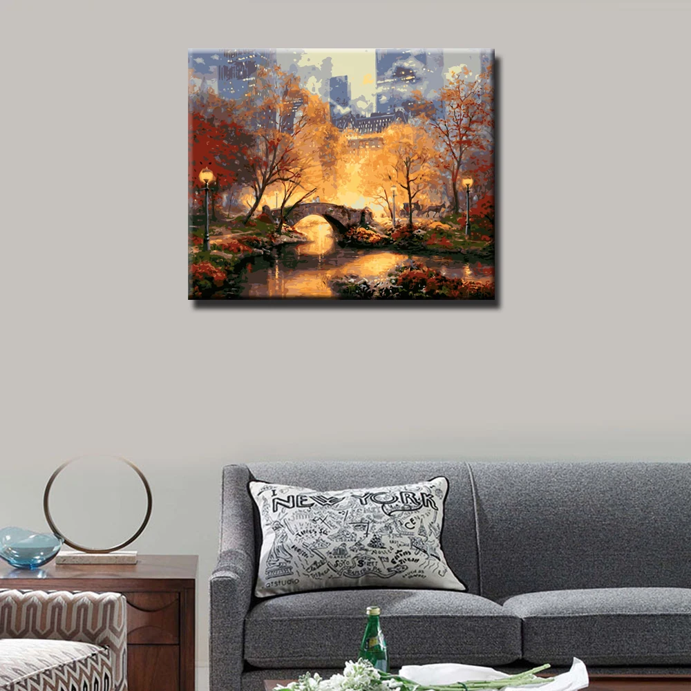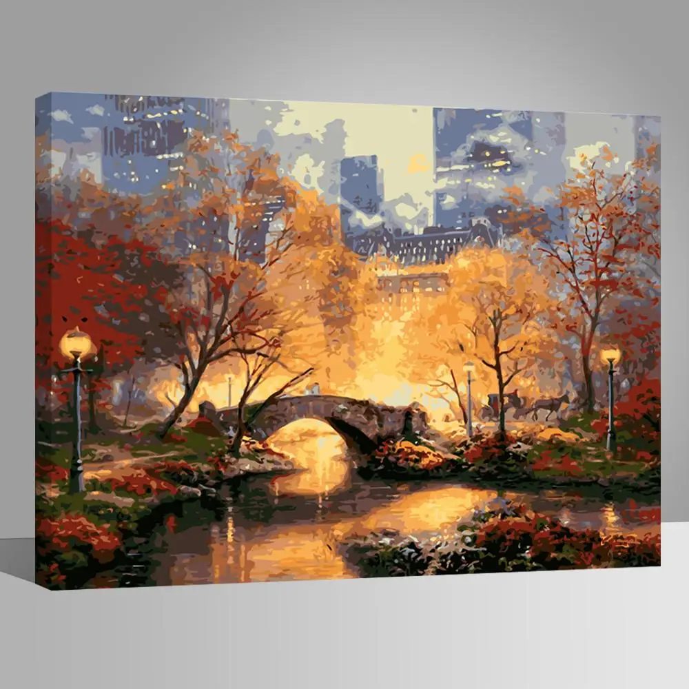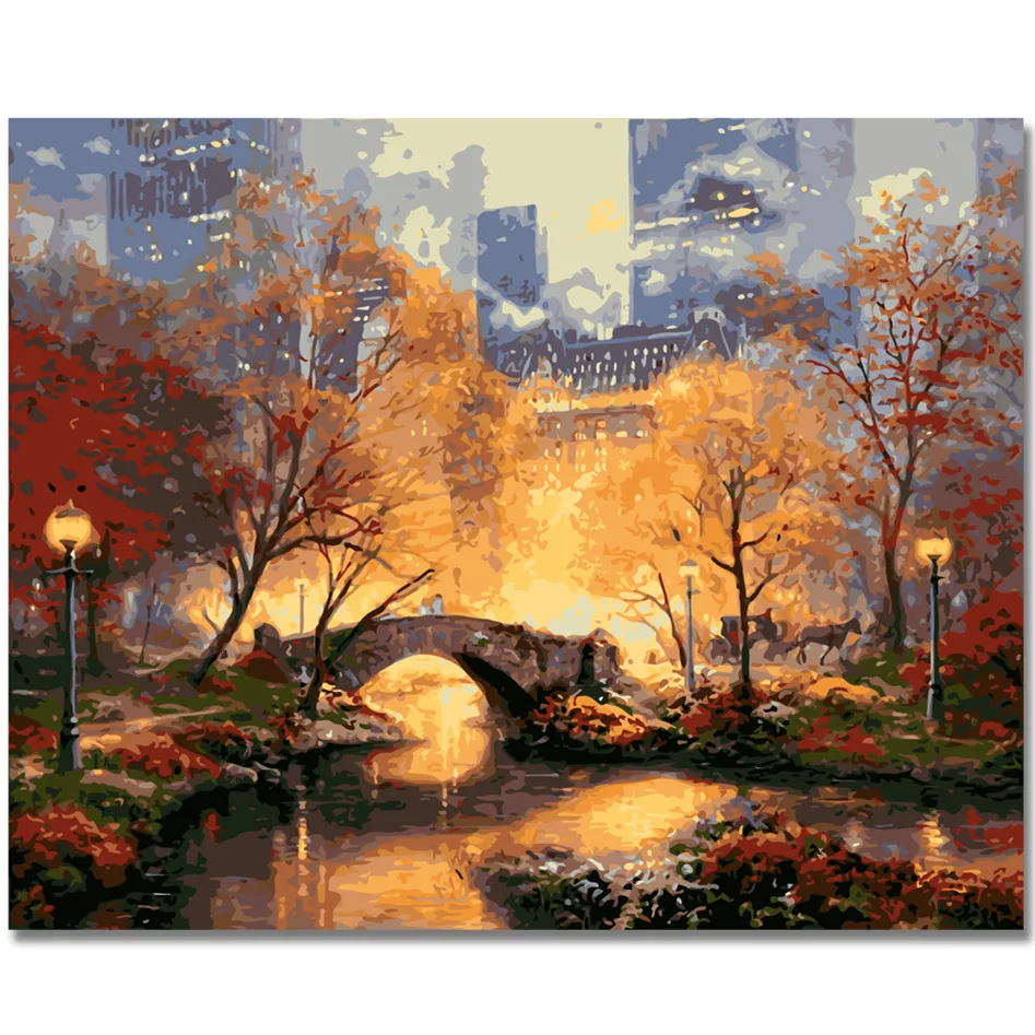 Набор для рисования по номерам яркая и красивая Осенняя сцена DIY масляная краска для взрослых детей для начинающих городской парк-16x20 дюймов