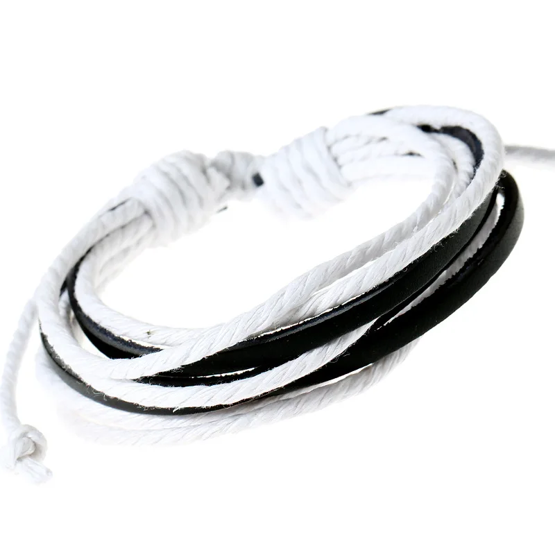 Button Hand Chain Leather Bracelet Fashion Bangles Wrist Men`s Wrap Weave Band