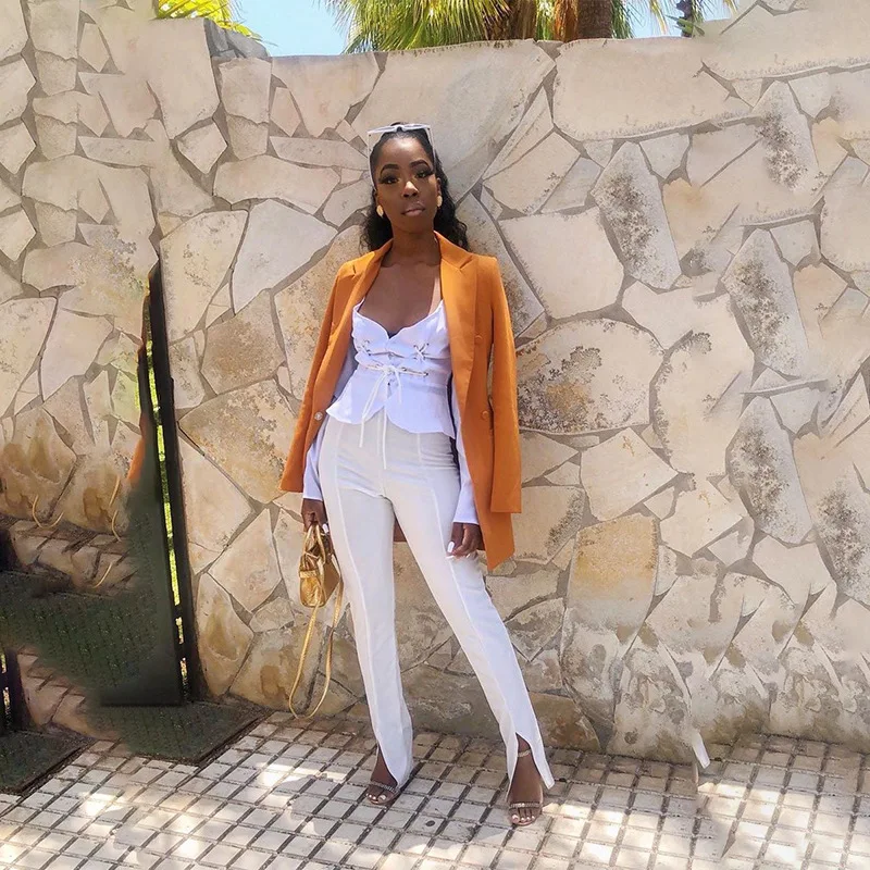 Повседневные брюки с высокой талией, расклешенные брюки для женщин, длинные брюки с разрезом спереди, женские уличные брюки для девочек, эстетичные черные брюки