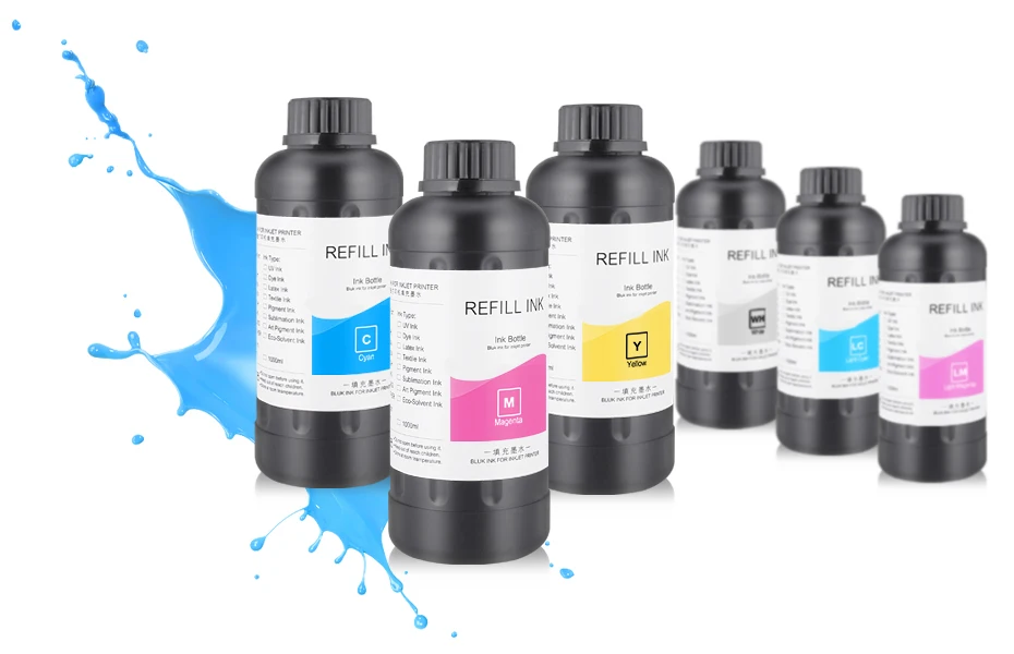 Название продукта: УФ-чернила, УФ-принтер чернила, СВЕТОДИОДНЫЙ УФ-чернила Подходящая печатающая головка модель: Для DX3 DX4 DX5 DX6 DX7 DX10 печатающая головка Длина волны: 395нм Тип УФ-чернил: мягкие чернила и жесткие чернила Цвет: BK C M Y белый глянец Объем бутылки: 500 мл/бутылка Срок годности: 12 месяцев, белый-6 месяцев Материал применения s: дерево, Хромовая бумага, ПК, ПЭТ, ПВХ, АБС, акрил, пластик, кожа, резина, пленка, диски, стекло, керамика, металл, фотобумага, каменный материал и т. Д.