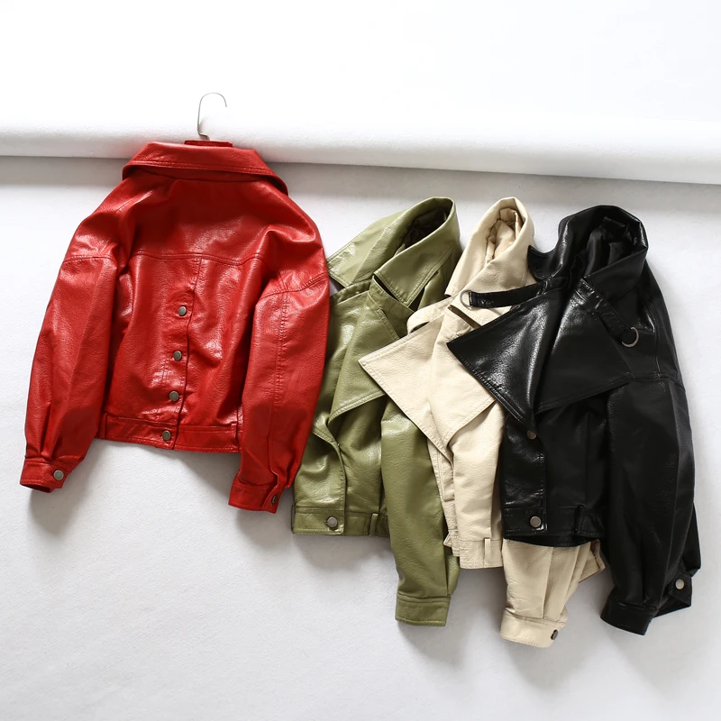 Короткая женская куртка из искусственной кожи новинка весна осень 2018 облегающая