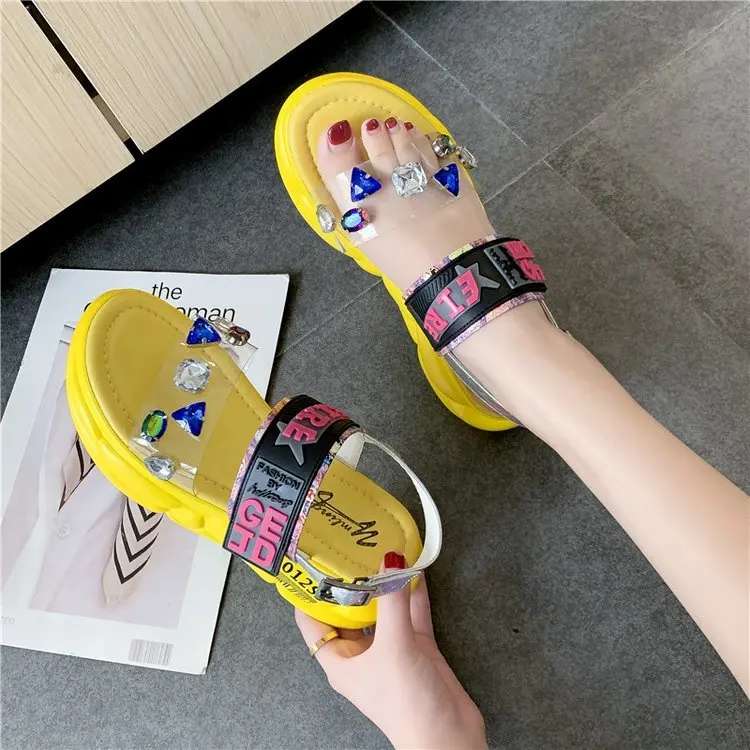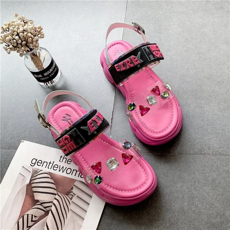 Женские босоножки на платформе в европейском стиле, черные сандалии со стразами, лето 2019