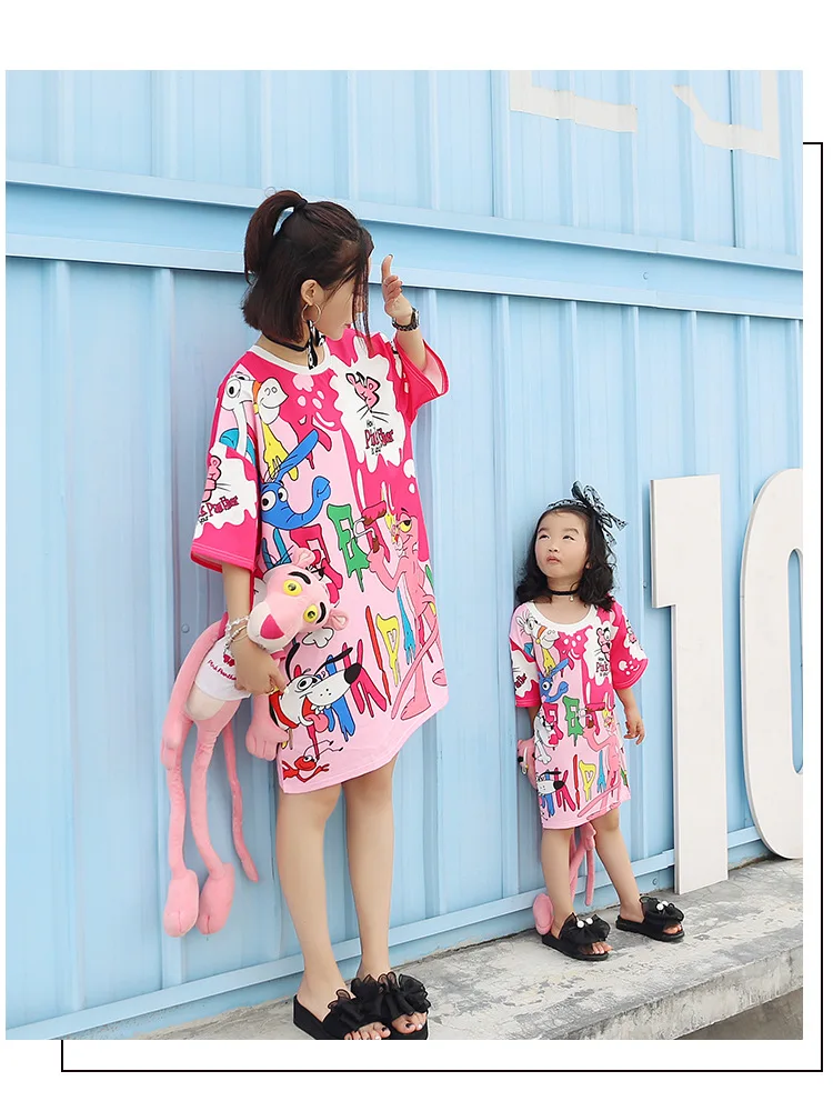 Летнее платье для мамы и дочки, пляжная одежда, Семейные футболки с принтом, футболка для мамы и дочки U0009, 2019