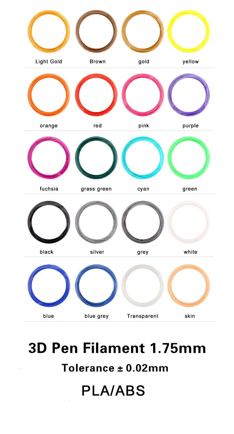 ABS нить отличная ударная прочность, стойкость к истиранию, химическая стойкость и крашение. Легко перемещать поддерживающий материал. Например: 3d-ручка SUNLU, например, SL-300, SL-300A.