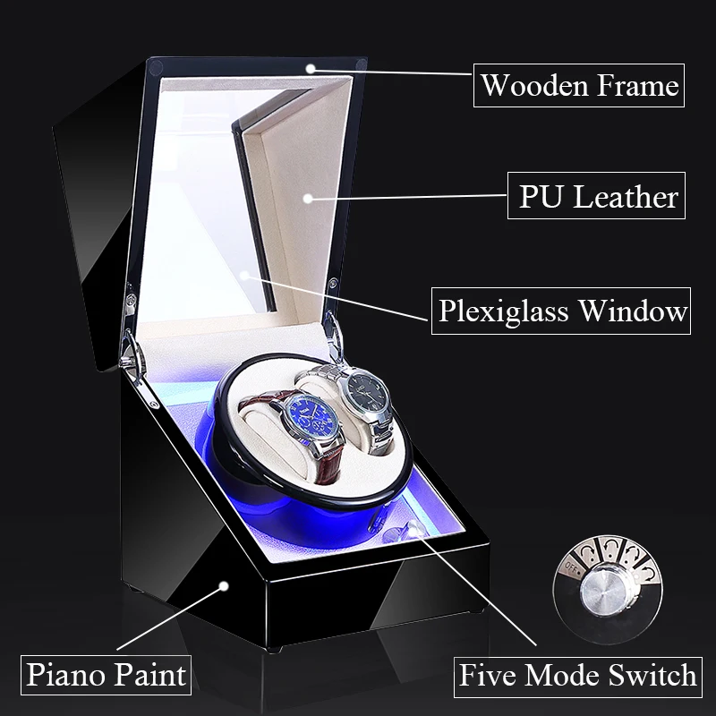 Роскошные автоматические часы Winder 2 + 0 стиль. Функция обновления: Автоматическая остановка при открытии крышки. Дополнительный дизайн с питанием от переменного/постоянного тока Батарейки в комплект не входят (2 × D батареи) Супер беззвучный мотор Лучший подарок на Рождество/годовщину/День рождения/День Святого Валентина Классическая Ручная работа"