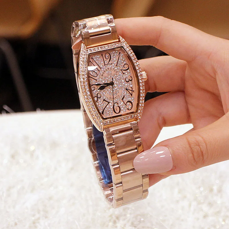 Женские кварцевые наручные часы из искусственной кожи со стразами и циферблатом