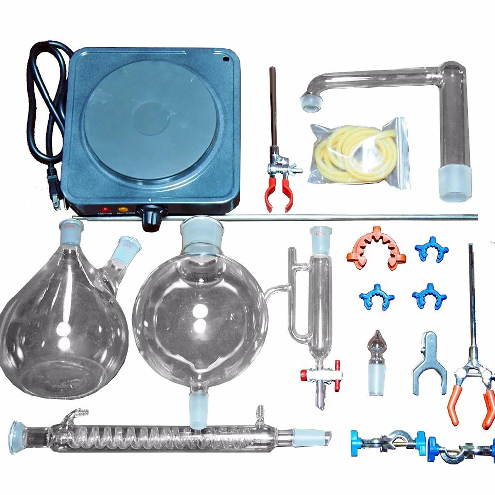 Новые 2000 мл лабораторные эфирные масла Паровая дистилляция аппараты наборы приборов из стекла очиститель воды с горячей плитой Грэм конденсатор