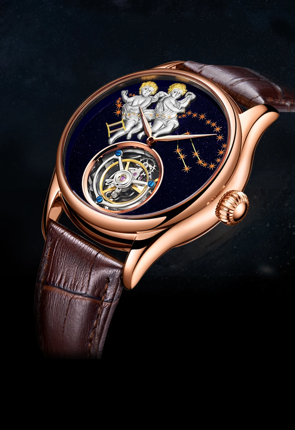 Турбийон-это своего рода устройство регулирования скорости часов, изобретенное швейцарским мастером Луи Баоцзи в 1795 году. Цель механизма маховика заключается в исправлении ошибок, вызванных гравитацией. Часы Tourbillon представляют собой самый высокий уровень в процессе производства механических часов и всегда были известны как «Король часов».