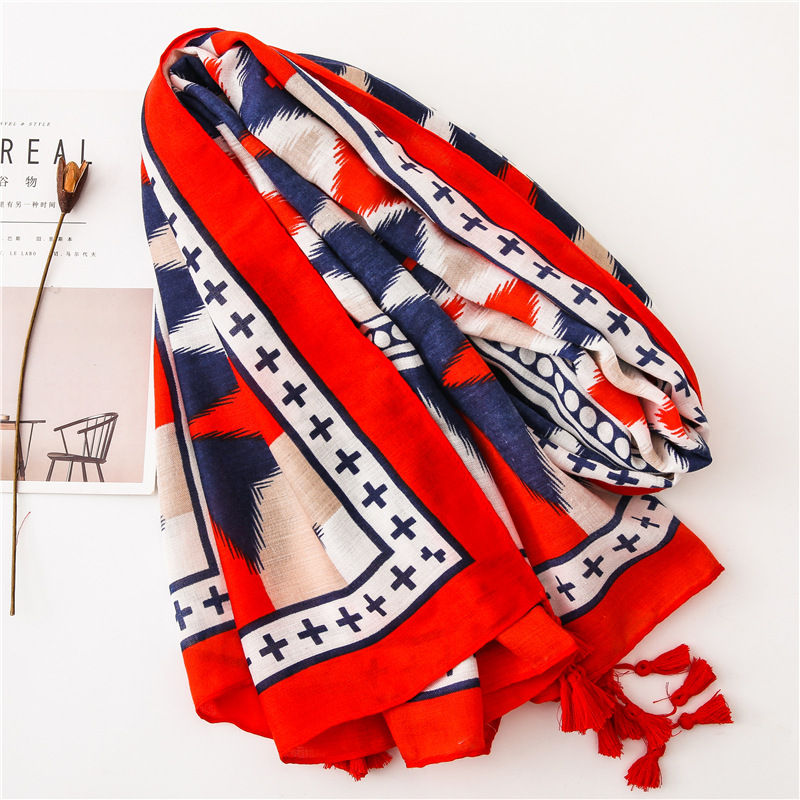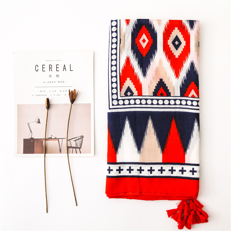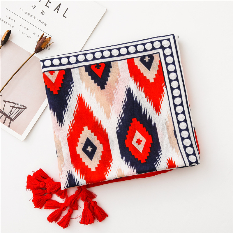 Женский шарф, геометрический, в клетку, красный, синий, модный шарф, алмаз, вискоза, шарф, Испания, принт, длинная шаль, большой размер, теплый, Пашмина