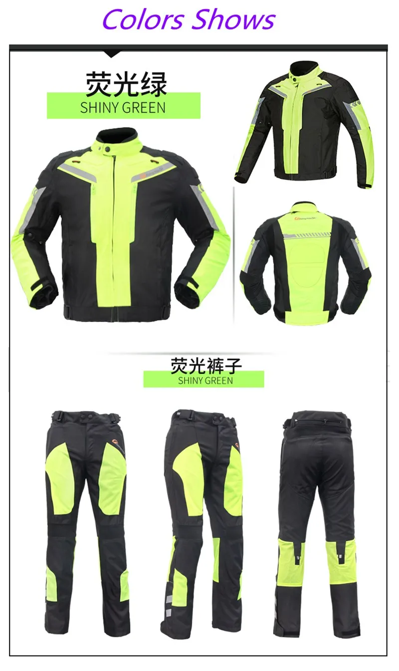 Материал: оксфордская ткань 600D, лайкра, Эва Сезон: полный сезон Цвет: черный/белый/зеленый Размер: M/L/XL/2XL/3XL/4XL 100% Фирменная Новинка в наличии В комплект входит: 1 пара мотоциклетных брюк 1 шт. Съемная водонепроницаемая или теплая подкладка 4 шт. x съемные, из ЭВА gear