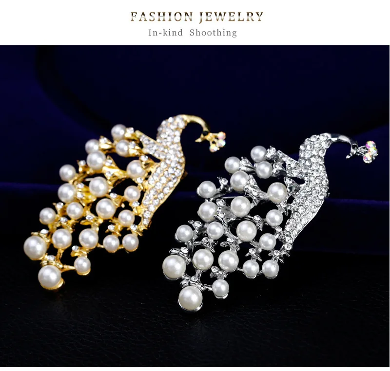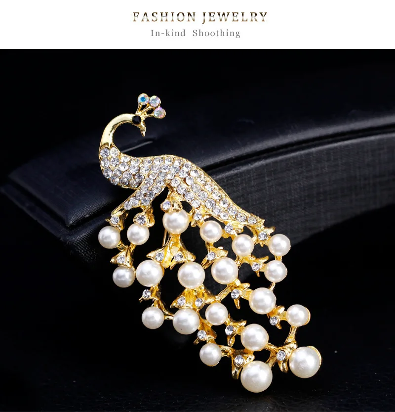 Модные броши в виде павлина с кристаллами и жемчугом для женщин, модные броши в виде животных из сплава Серебряного и золотого цветов со стразами, значки, брошь, ювелирное изделие