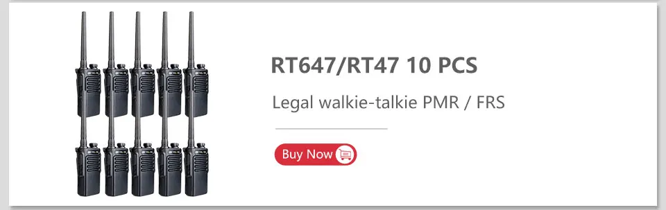 1 х RT647 двухстороннее радио Для аккумулятора (1 шт.) 1 х Зажим для ремня 1 x usb-кабель для зарядки Руководство пользователя (1 шт.)