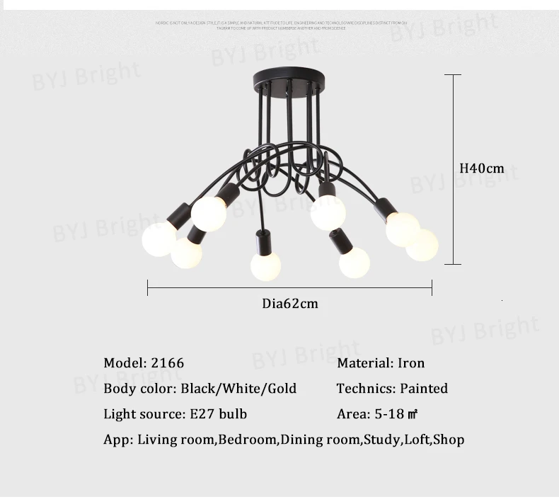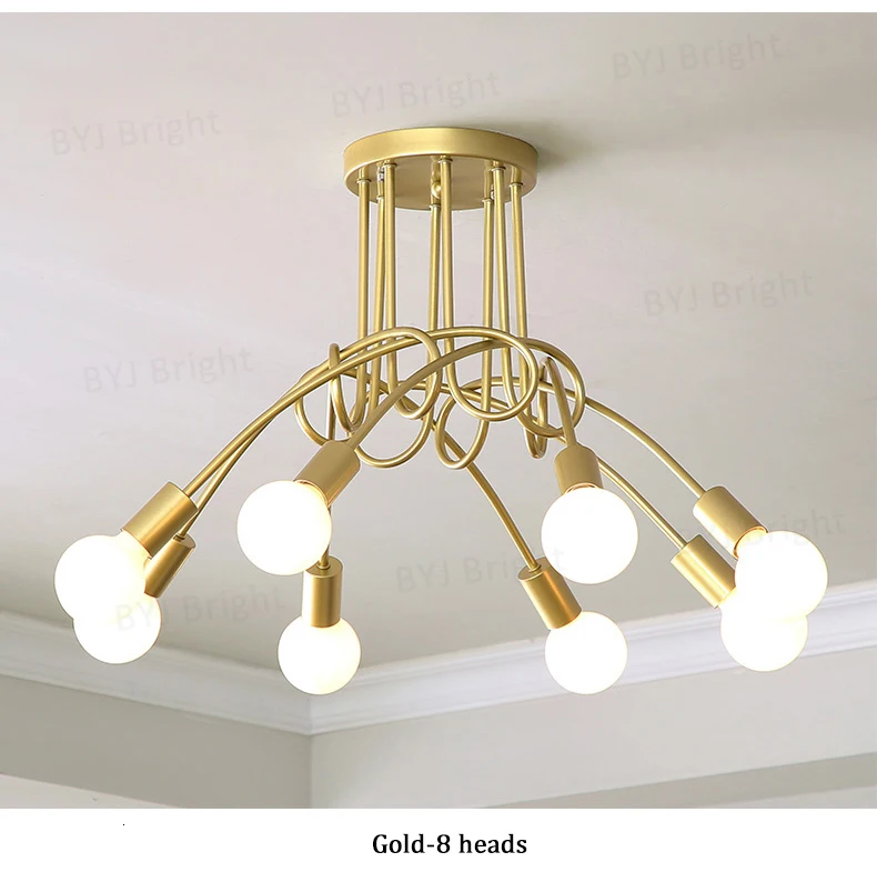 Особенности: 100% Фирменная новинка. Размер: 3 hrads Dia62 * h40 см 5 головок Dia62 * H40cm 8 головок Dia62 * H40cm Основной материал: железо Напряжение: 85-265 в Цвет корпуса: Золотой/черный/белый Тип источника: светильник e27 Светильник включен или нет: нет