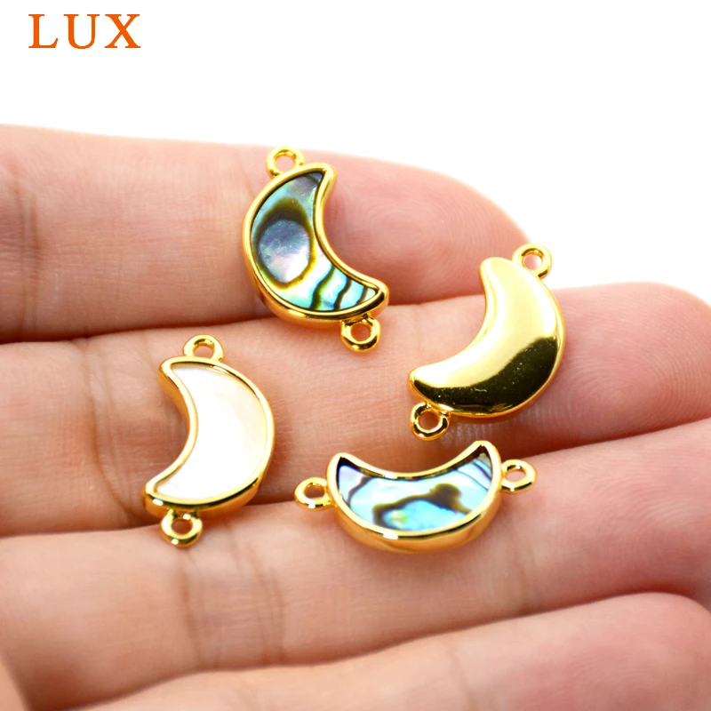 Красивый позолоченный натуральный корпус полумесяц Соединитель Кулон пляжные морские ракушки драгоценные камни камень Рог Подвески Бохо ювелирные изделия
