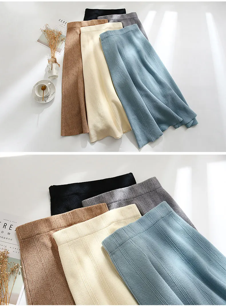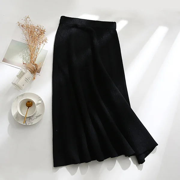 юбка Плиссированная Женская с высокой талией Осенняя длинная винтажная серая