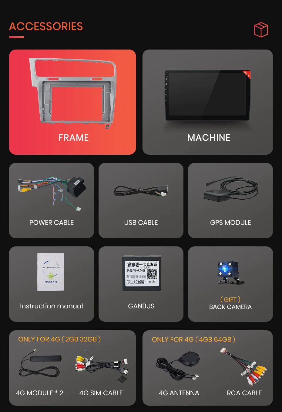 -Только для версии 4 Гб + 64 ГБ Этот DVD обеспечивает usb-разъем, который поддерживает подключение к телефону, легко управлять и обрабатывать Iphone через устройство. Он называется ZLINK в системе