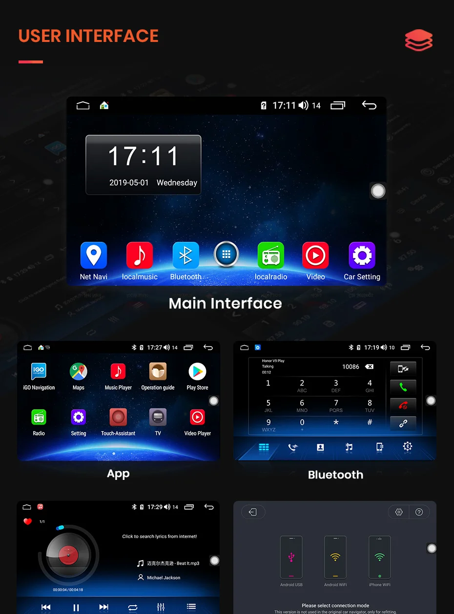 Благодаря сети 4G и встроенному Wi-Fi вы можете наслаждаться серфингом в Интернете независимо от того, где вы находитесь, что делает его возможным для онлайн-навигации/музыки/кино и т. Д. Перед включением устройства вставьте sim-карту.