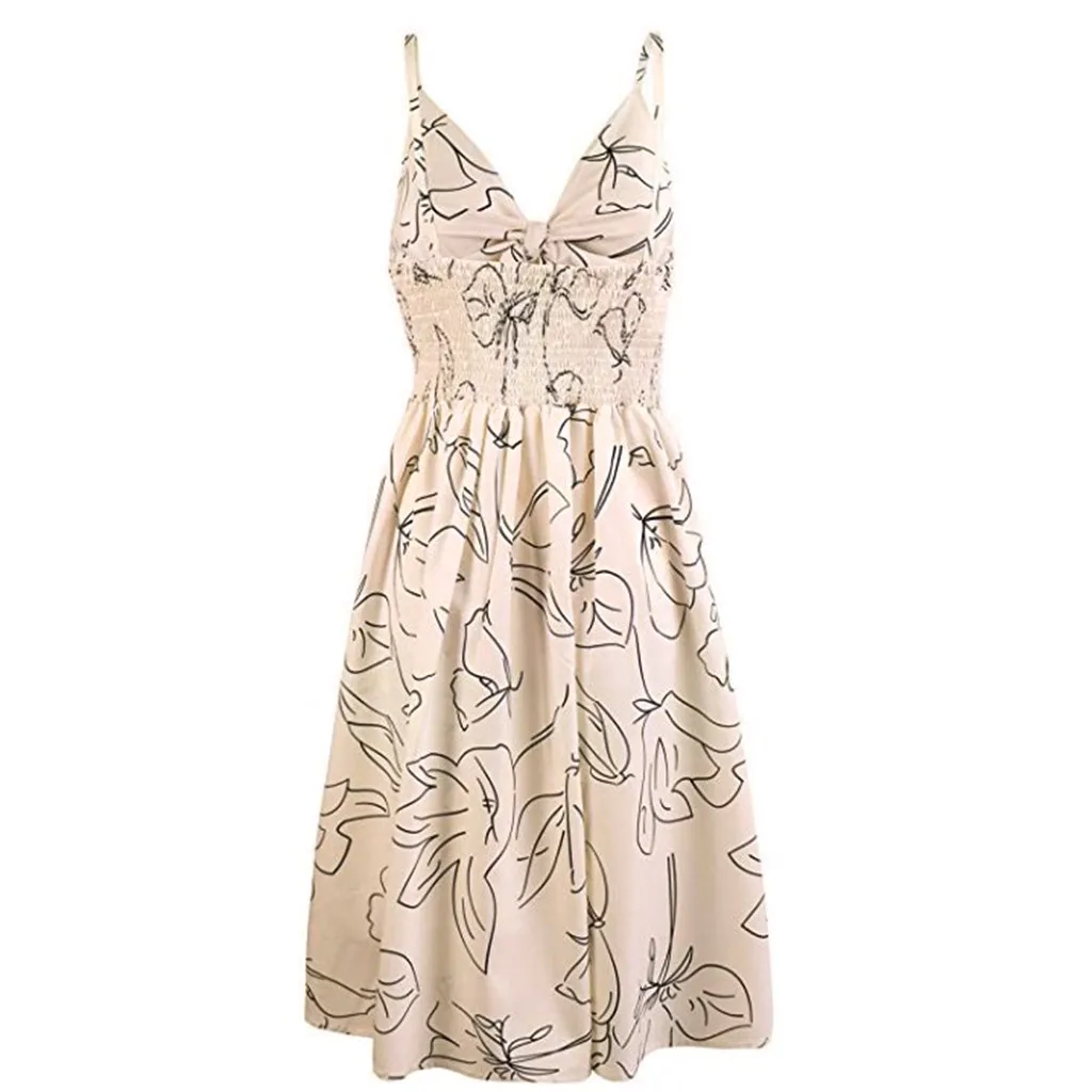 Женское летнее платье на шнуровке, повседневное ТРАПЕЦИЕВИДНОЕ платье миди с v-образным вырезом, пуговицами и открытой спиной, с цветочным принтом