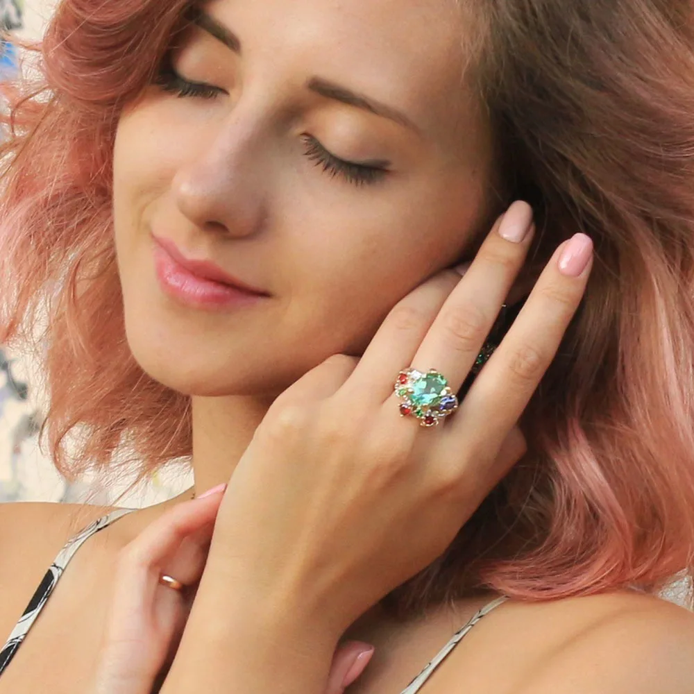 Изготовлен из окружающей среды металлической меди, черный и золотой 2 тона покрытие, вымощенный набор с овальной оливковый цвет и фиолетовый/красный/прозрачный цветной Фианит. -- Высокое качество -Быстрая доставка -- Хороший ювелирные изделия ручной работы -- Не вызывает аллергии, не содержит никель