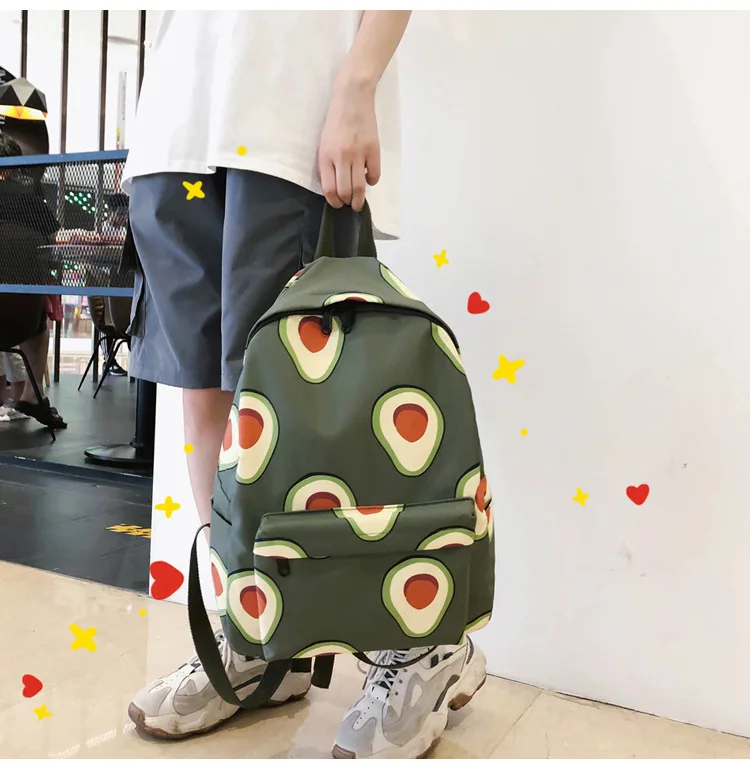 Милый зеленый рюкзак авокадо, нейлоновый Модный женский рюкзак с фруктовым принтом, школьный рюкзак для девочек-подростков, клубника, mochilas mujer