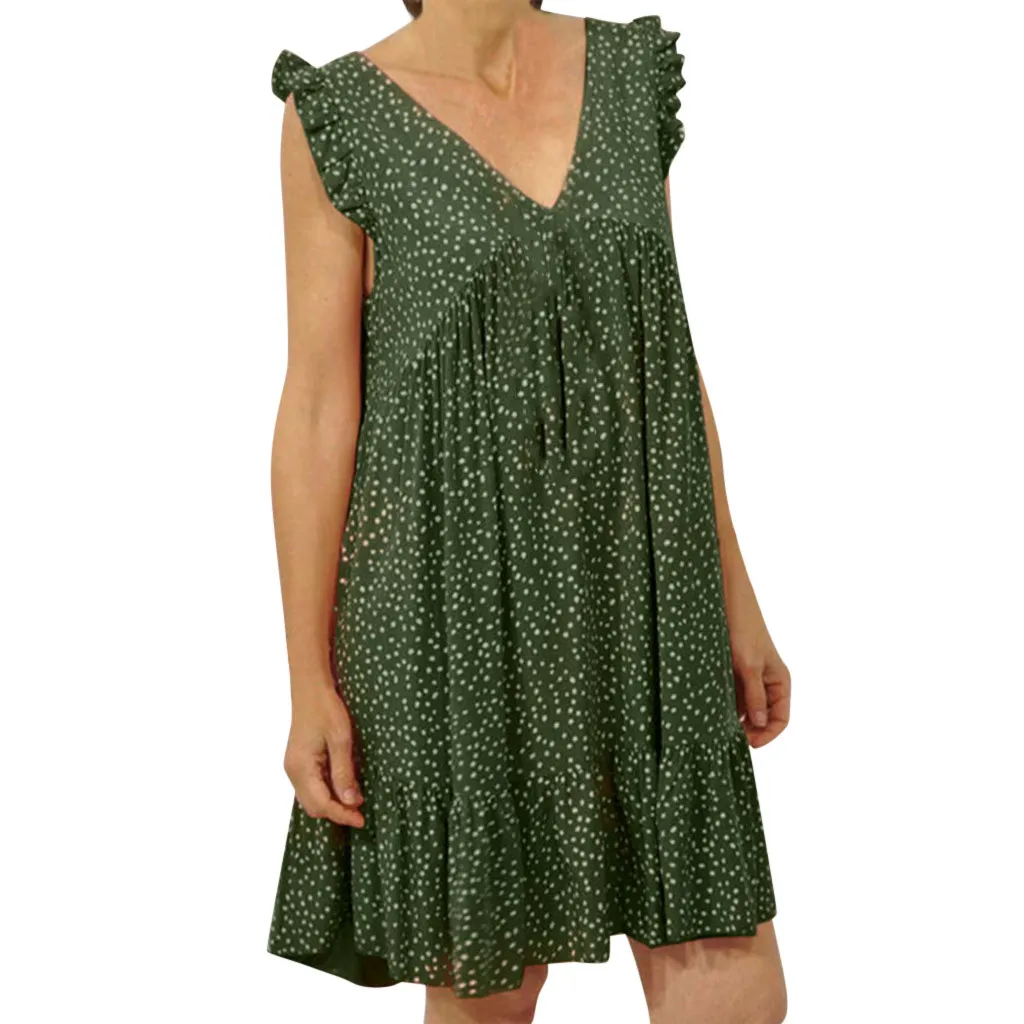 Женское летнее платье без рукавов с v-образным вырезом, в горошек, с рюшами, вечерние, пляжные платья