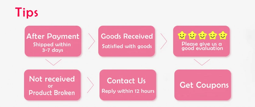 1. Пожалуйста, убедитесь, что ваш адрес правильный. Покупатель несет ответственность, если адрес неверный. Мы отправим товар в течение 3-7 дней с момента получения оплаты.