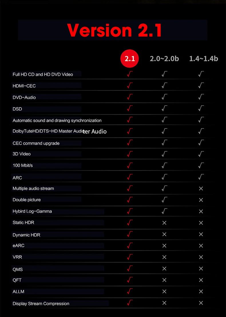 Напоминание: устройства 8K еще не популярны, поэтому сегодня Производительность HD 2,1 может не достигать лучшего. Однако качество звука, динамика и качество картинки все же гораздо лучше, чем HD2.0.