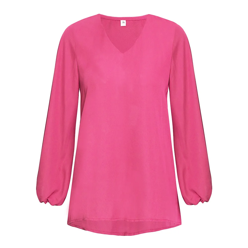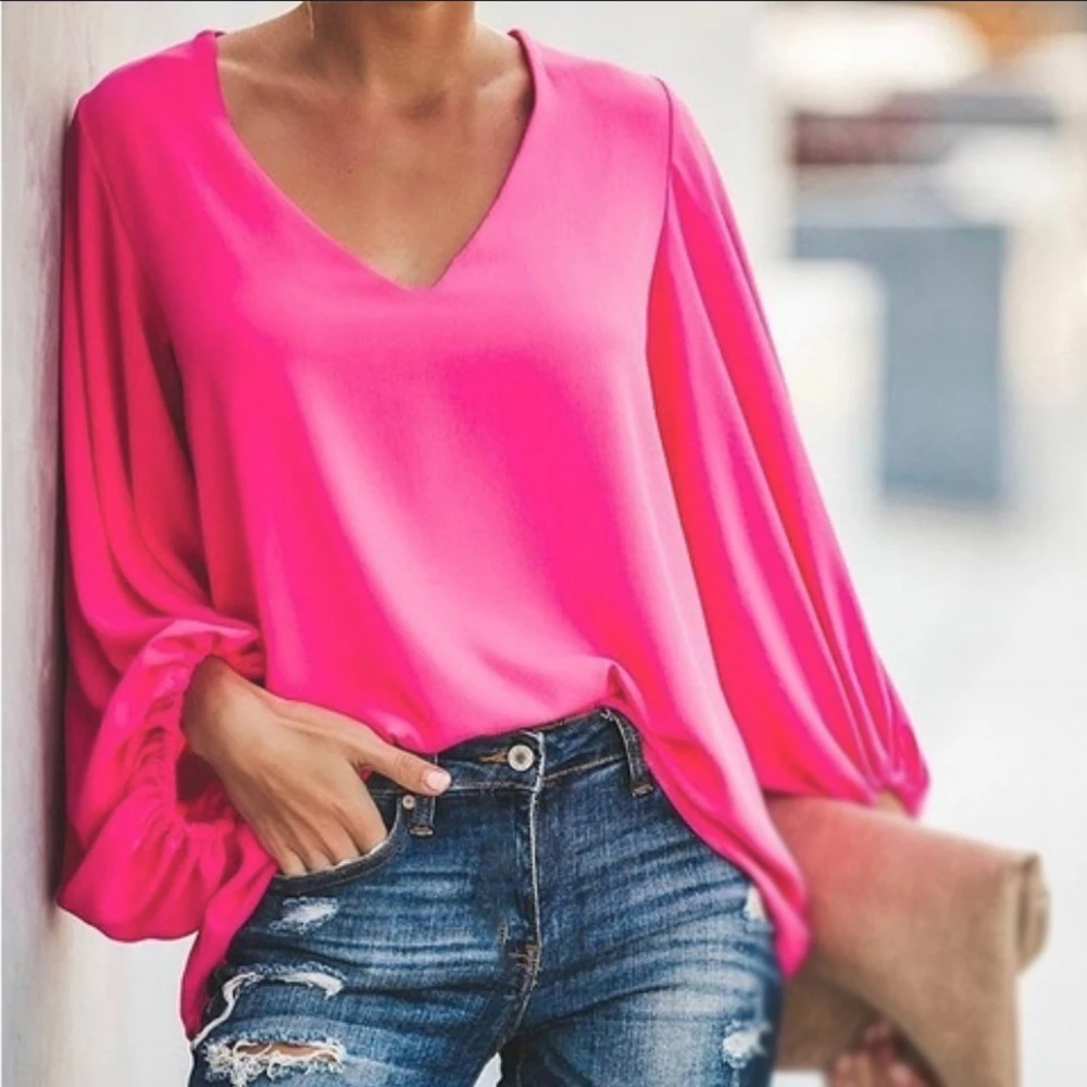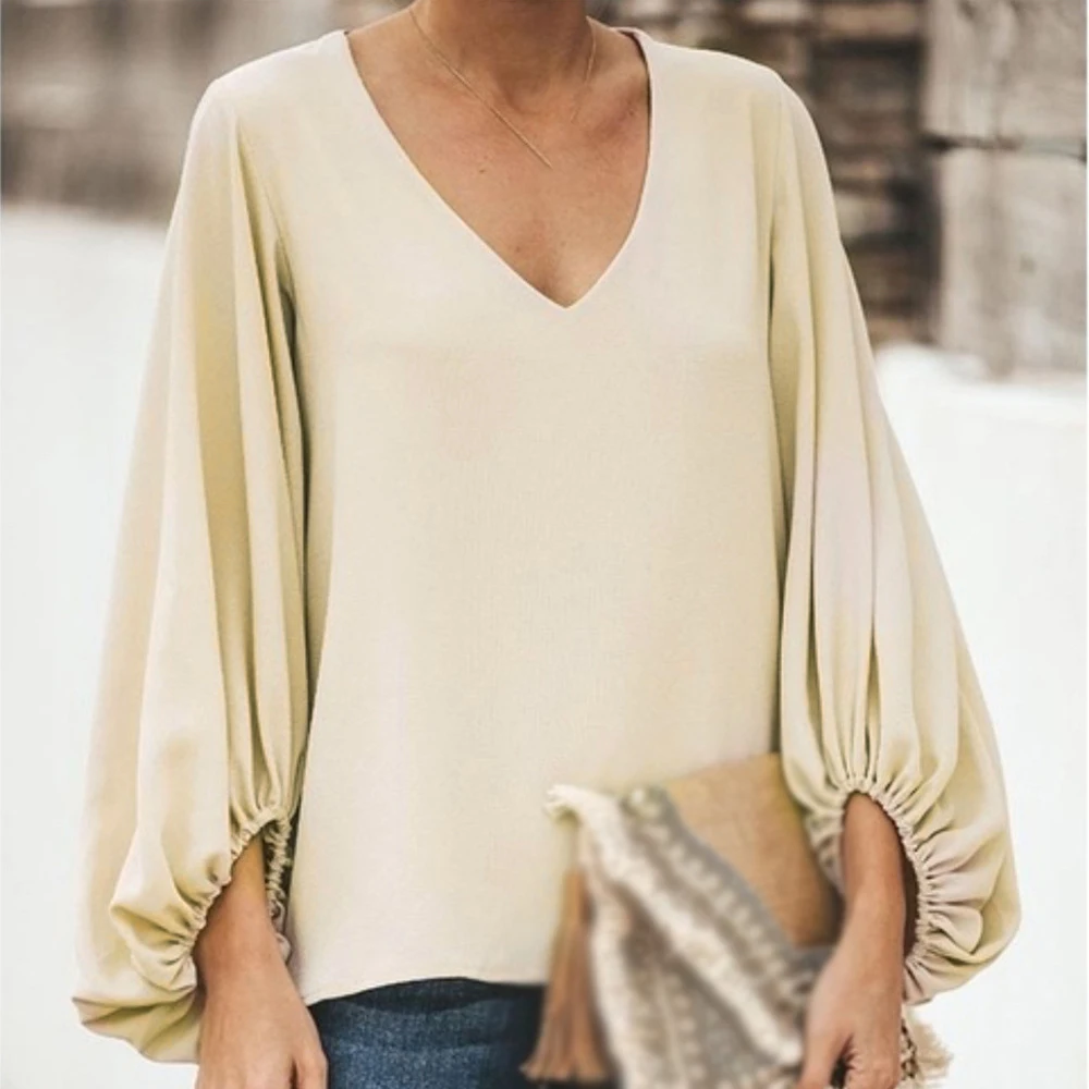 * Описание товара: повседневный, v-образный вырез, рукав-фонарик, свободный, сплошной цвет